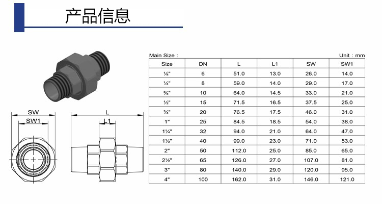| 不鏽鋼雙頭(tou)外牙活接管(guan)件 | |